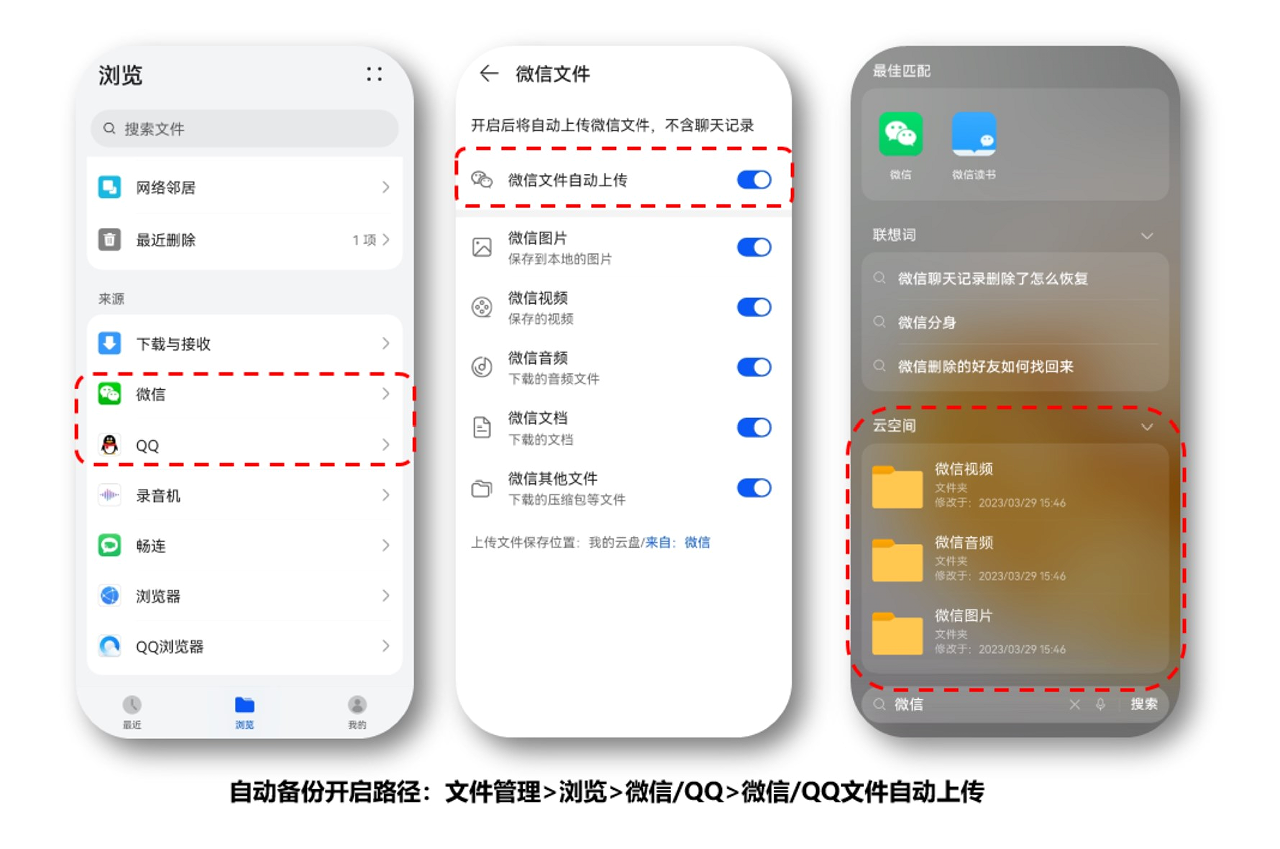 总而言之,妙用华为智慧搜索查找本地或云端文件,就可以让办公效率翻倍。不仅如此,日常生活中微信聊天的照片,朋友发来的视频也可以通过云盘备份,想要回忆美好时刻的时候只要桌面下拉就能快速找到。