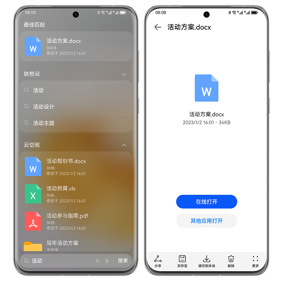 没换P60系列的小伙伴也不要羡慕,后续更多华为机型也会支持下拉搜云空间云盘功能。解放内存、带来全新搜索体验,四舍五入在更新后也相当于有个“新”手机啦!