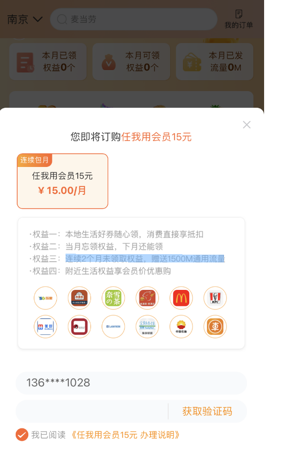 ▲“任我用”会员权益领取页面