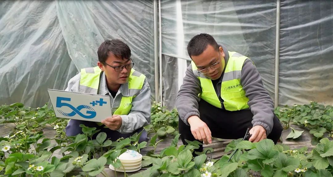 (湖北移动技术人员在智慧农业大棚现场检测物联网设备)
