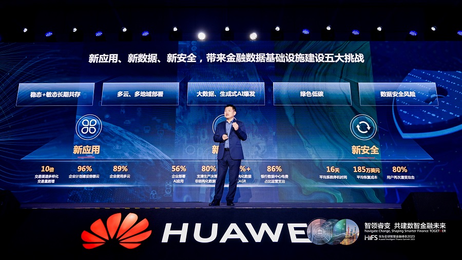 华为数据存储产品线总裁周跃峰认为,在“新应用、新数据、新安全”趋势下,金融行业面临稳态敏态如何长期共存、金融业务多云多地域分布、生成式AI爆发、绿色低碳和数据安全五大问题与挑战,需要持续创新,通过为稳态和敏态提供各自适配的IT基础设施,引入分布式新核心数据库存算分离、云原生容器存储、AI数据存储、存储内生安全等新方案,助力金融行业构筑可靠、绿色、安全的金融数据基础设施。