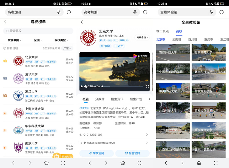 与此同时,考生们也需要针对性的提前准备志愿院校名单。综合院校选择三要素:城市、学校和专业,考生同样可以在华为智慧搜索的高考专题页面中,按不同地域城市查看包含院校属性、设置专业、历届招生等信息在内的全国各大正规高校资料,以及高校排行、院校对比、校园VR实景等信息,一站式筛选理想学校,更避免因难以辨认的网络虚假信息误选“野鸡大学”。
