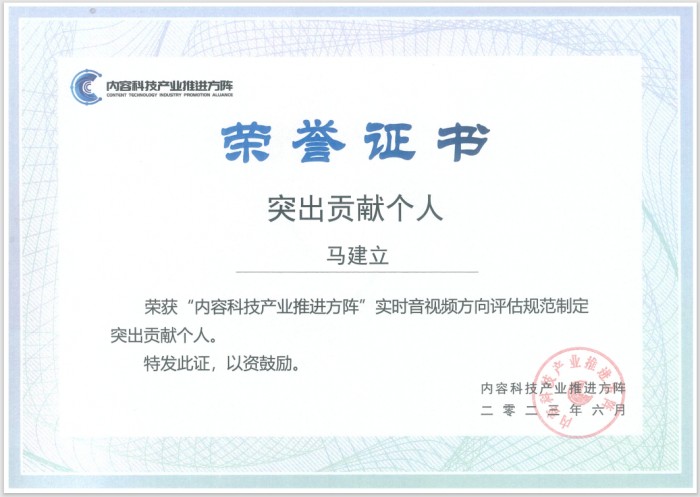 会上,网易云信获颁《实时音视频服务基础能力要求及评估方法》核心参编单位证书,在规范制定过程中提供突出贡献的云信专家们获得突出贡献个人奖。