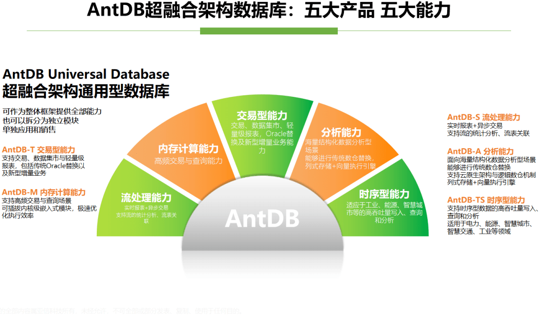 AntDB数据库作为一款可扩展、多租户、高可用、高性能、低成本、国产自主、安全可靠且对业务透明的分布式金融级大规模并行处理关系型数据库产品,采用超融合架构,融合事务处理和在线分析操作,具备先进的数据治理和数据安全特性,支撑亿级用户,提供PB级别数据处理能力,高度兼容Oracle产品特性。