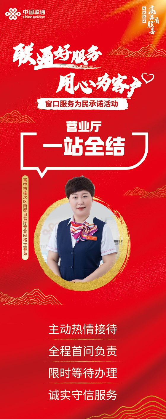 在山西晋中联通榆次区南都自营厅,有一位资深经理——王春茹,她从事营销服务工作19年,形成了对服务的独特理念--“服务永无止境,满意只是起点。”她秉承"服务从心开始"的理念,不断努力为客户提供优质、高效的服务,让他们高兴而来,满意而归,将服务视为一项从内心发出的承诺。