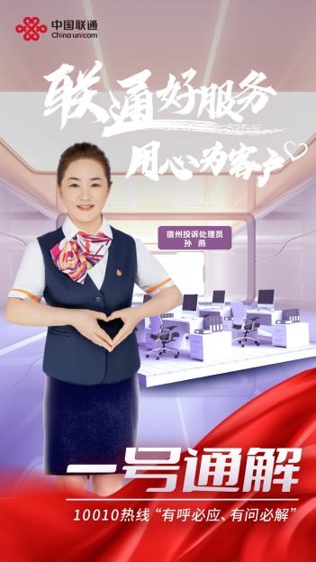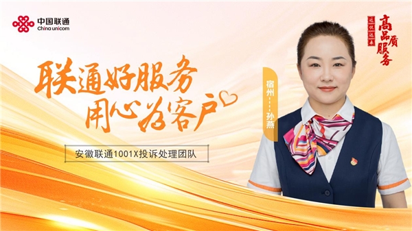 孙燕是宿州联通公司投诉处理员。多年来的用心服务赢得了客户的一致好评,多次被市分公司授予“优秀员工”荣誉,2022年荣获安徽联通“服务之星”称号。