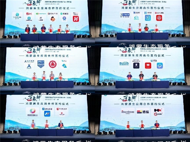 活动最后环节是隆重盛大的签约仪式,鸿蒙生态的核心伙伴在发展上一日千里,迅速发展出更多商业伙伴,成为鸿蒙生态系统的新动力。签约主体单位有:证开鸿、讯方技术、中软国际、博赛集团、鲲鹏创新中心、软通动力等实力强劲的品牌企业,签约对象包括分布在各行各业且带有鲜明行业特色的APP。鸿蒙生态在此刻显示出新生态价值链,生态发展开枝散叶生机盎然。