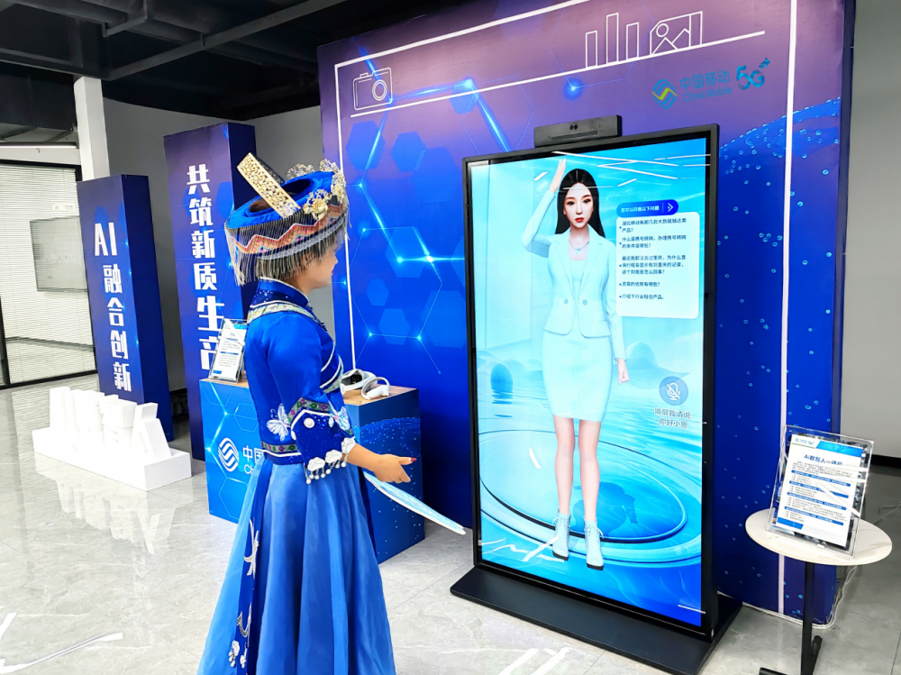 (主播与湖北移动AI数智人“小恩”互动)