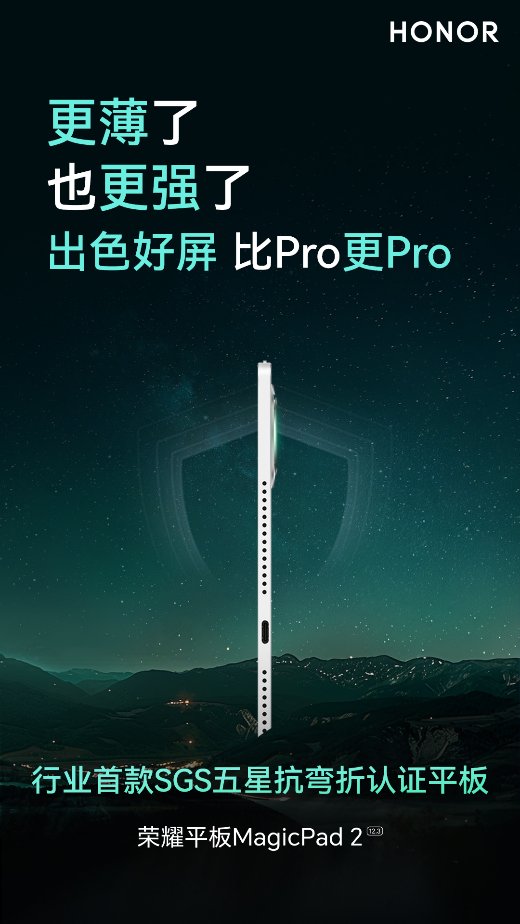 在可靠性方面,荣耀平板MagicPad2成功获得SGS抗弯折认证,是行业首个SGS五星抗弯折平板。其机身刚度是iPad Pro的1.5倍,达到了行业最优水平,能够有效应对各种突发情况带来的伤害,为职场办公提供可靠保障。