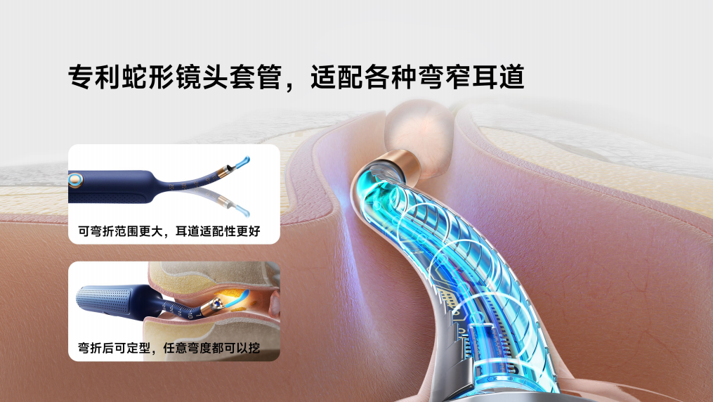 发布会上,bebird蜂鸟展示了其在设计和技术上的深厚积累。这款全力打造的bebird 3新品,从设计、技术、用料到使用体验等方面,都代表了目前市面上同价位产品的最高水准。首先在设计上,bebird 3采用了蜂鸟专利的蛇形可弯曲镜头套管,适配各种不同弯窄耳道。尤其是针对耳洞细小,耳道弯窄的儿童使用人群来说,它的可弯折范围更大,对于耳道的适配性更好。弯折后直接任意角度定型,更便于操作。此外,专业级别的3防3P高清镜头,不仅防水防雾防尘,还通过三层光学镜片确保视野更加清晰震撼,能够让父母和孩子看清耳道中所有的耳垢分泌物,才能真正做到“有的放矢”。