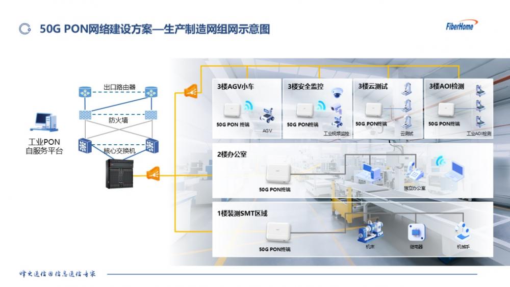 在此政策指引下,中国电信联合烽火通信开展万兆工厂试点,精准对接智能制造对海量数据实时传输和交互的迫切需求。凭借50G PON具备的单用户接入带宽10Gbps以上、关键业务时延可控制在 100 微秒内、可靠性高达99.999%等优势,有效破解传统网络在工业场景中的瓶颈,完美契合工业场景的严苛标准,为制造业数字化转型提供了强有力的网络支撑。