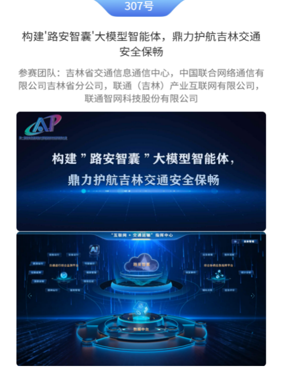 12月10日,由交通运输部科技司、国家邮政局政策法规司指导,交通运输部职业资格中心主办的第一届综合交通运输大模型智能体创新应用大赛在福建厦门圆满落幕。由吉林省交通信息通信中心牵头,吉林联通、联通(吉林)产互、联通智网科技联合提供技术支撑的项目——“路安智囊”大模型智能体,凭借对交通运输应用场景的精准洞察及技术应用的创新突破,荣膺大赛全国一等奖。