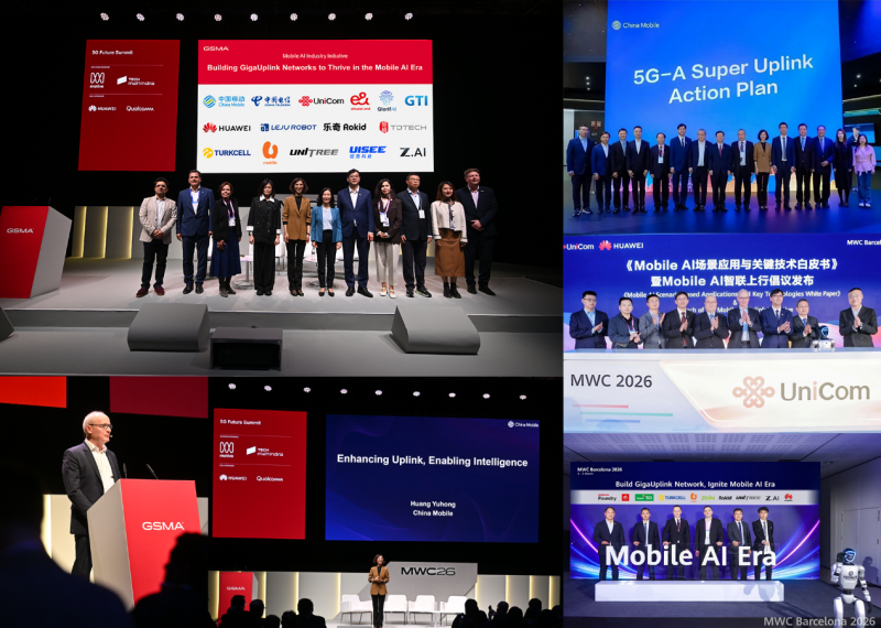 MWC26巴塞罗那期间,GSMA联合全球领先运营商、产业组织及AI生态公司正式发布大上行网络倡议,确立GigaUplink为移动AI网络演进优先方向。同期,中国移动发布5G-A超级上行行动计划,中国联通举办Mobile AI智联上行创新发布会,华为携手产业伙伴发起“聚力共筑大上行目标网,繁荣移动AI”倡议,大上行成为本届MWC大会全球产业链高度聚焦的核心议题。此外,德国电信、沃达丰等欧洲运营商明确将大上行纳入5G-A商用部署路线图;高通则从终端侧发力,推出上行增强基带芯片,推动终端与网络能力深度协同,全球产业形成一致推进格局。