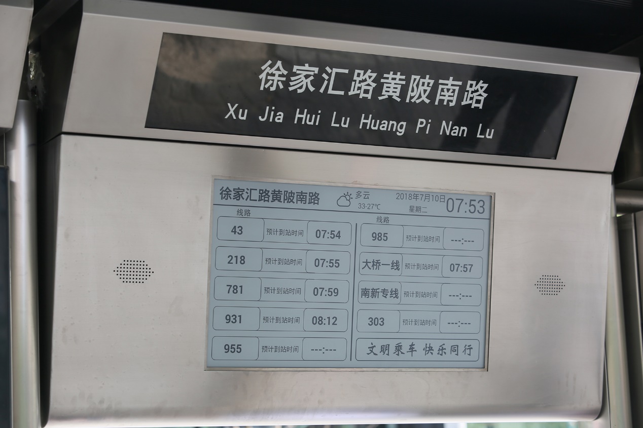 如今,随着智能交通和物联网技术的不断发展,充满不确定性的“等公交”之旅也变得尽在掌握之中。从2018年中开始,上海市中心城区陆续建设了一批电子墨水屏站牌,即使在太阳光的直射下,白底黑字的信息依然清晰可见。