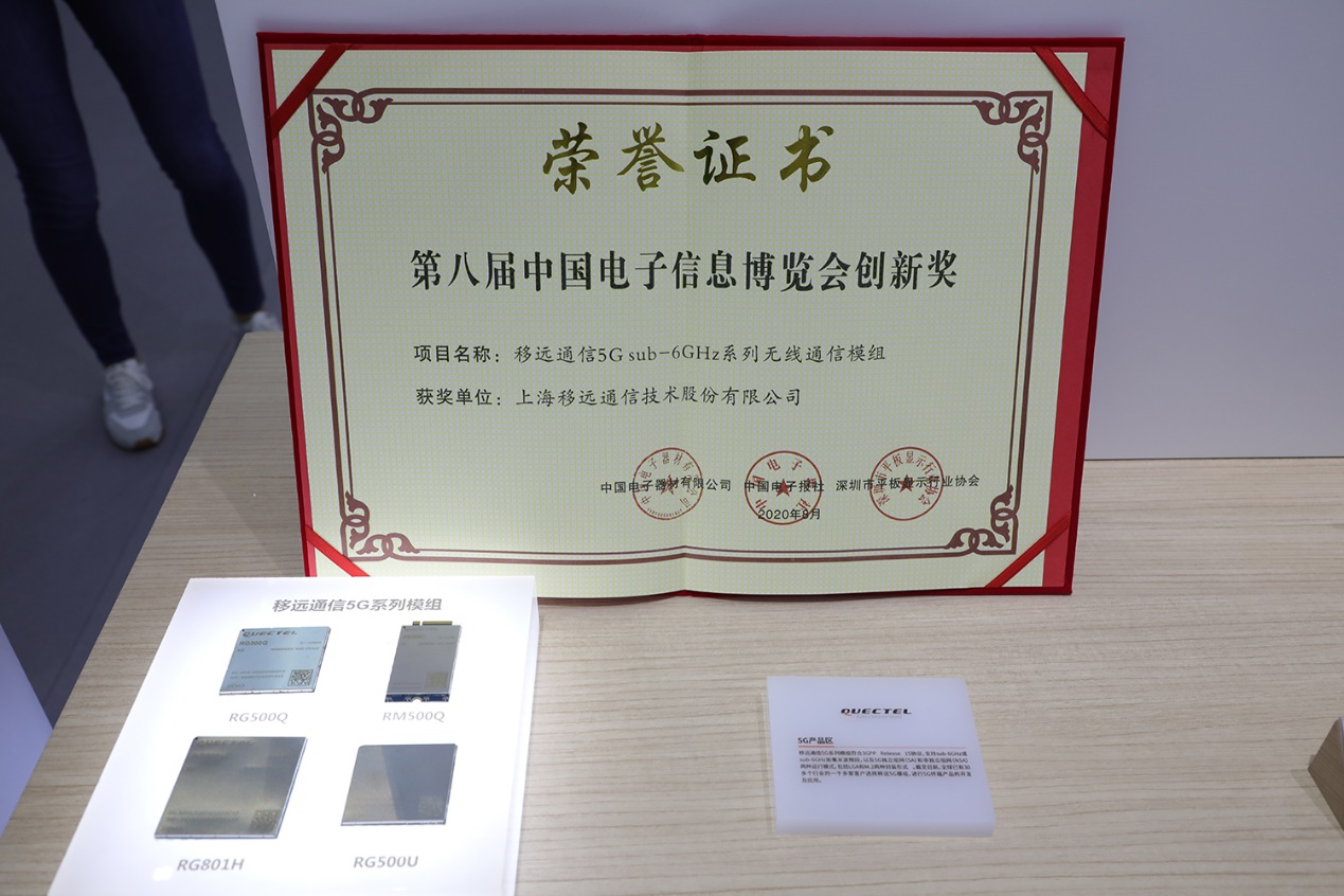 会上,移远通信5G Sub-6GHz系列模组荣获第八届中国电子信息博览会创新奖。
