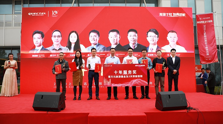 仪式上,移远还向8位员工颁发了十年服务奖,感谢大家十年如一日的支持肯定和倾心付出。
