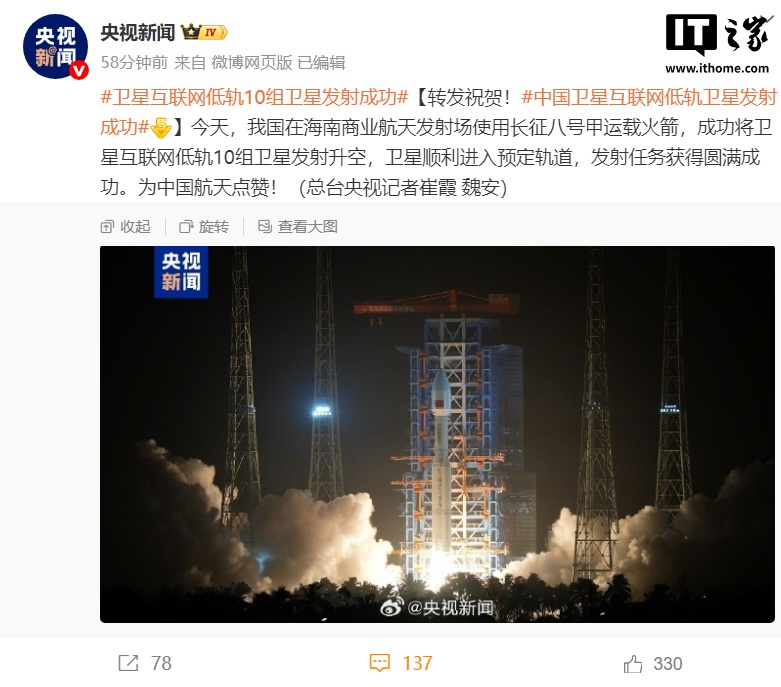 据央视新闻报道,8 月 26 日 3 时 08 分,长征八号甲运载火箭在海南商业航天发射场点火起飞,随后成功将卫星互联网低轨 10 组卫星送入预定轨道,发射任务取得圆满成功。