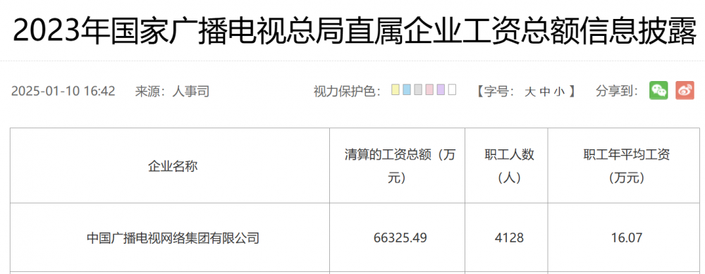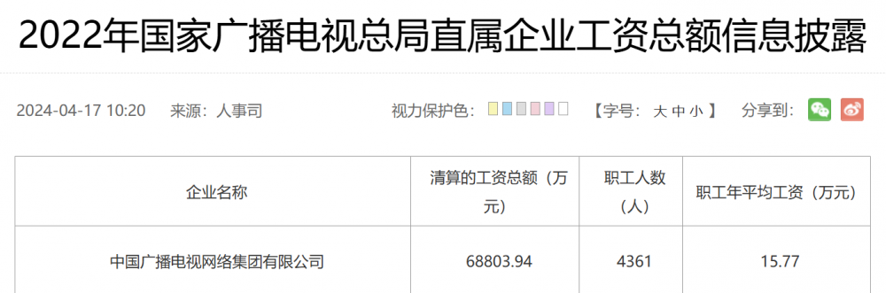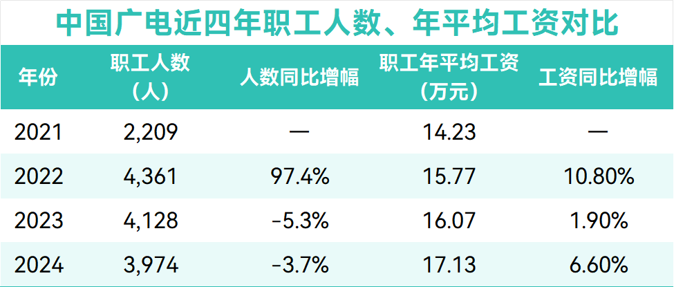 中国广电披露2024年平均工资:较去年涨薪6.6%