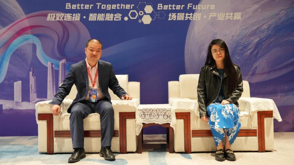图为行业资深专家、中山大学教授陈翔(左)与迪恩通信CEO冯晨远接受C114采访
