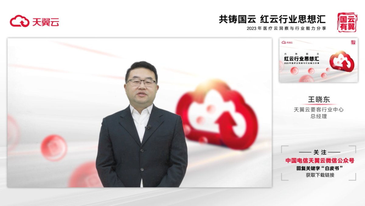 2月14日,中国电信天翼云“共铸国云 红云行业思想汇——2023年医疗云洞察与行业能力分享”线上会议顺利举办。会上,天翼云联合国际咨询公司IDC正式发布《中国医疗云建设与应用白皮书》,全面洞察我国医疗云现状,为卫生管理部门和医疗机构建设安全、可靠的医疗云平台,提供参考指南,以科技之力守护全民健康。