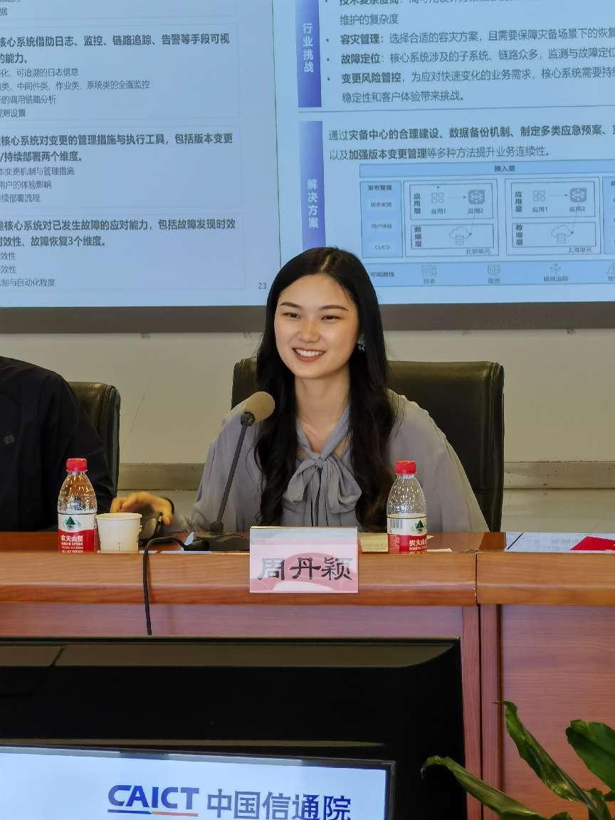 中国信息通信研究院云计算与大数据研究所云计算部高级业务主管周丹颖在会上分享了《银行核心系统现代化建设水平度量模型》的编制思路,并从分布式应用建设、分布式数据处理、自主可控、业务连续性保障、云化建设、技术能力支撑、协同管理7大维度对标准进行了详细解读。依托本度量模型的首批评估即日起正式启动,期望能够以评促建,助力银行打造新一代分布式核心系统。