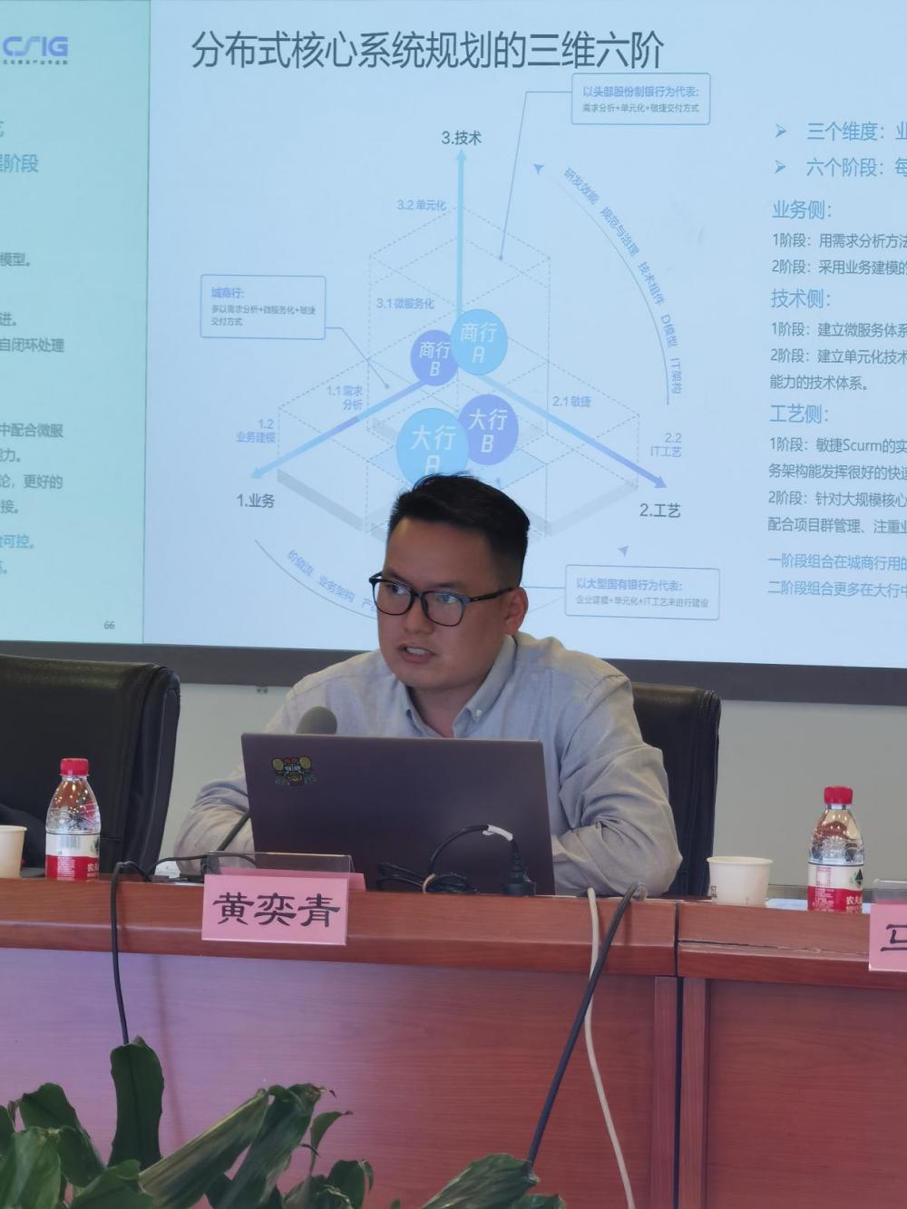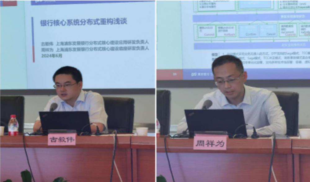 浦发银行分布式核心应用研发负责人古毅伟、分布式核心架构体系负责人周祥为分享了《银行核心系统分布式重构浅谈》,介绍了银行核心系统发展历程、分布式核心系统建设总体思路及架构、分布式核心开发域、分布式核心运维域和分布式核心运行域,重点描述了分布式事务和分布式数据库的建设,并提出单元结构的分合、数据切分维度以及分布式架构多地多中心等建设难点,与其他专家进行讨论。
