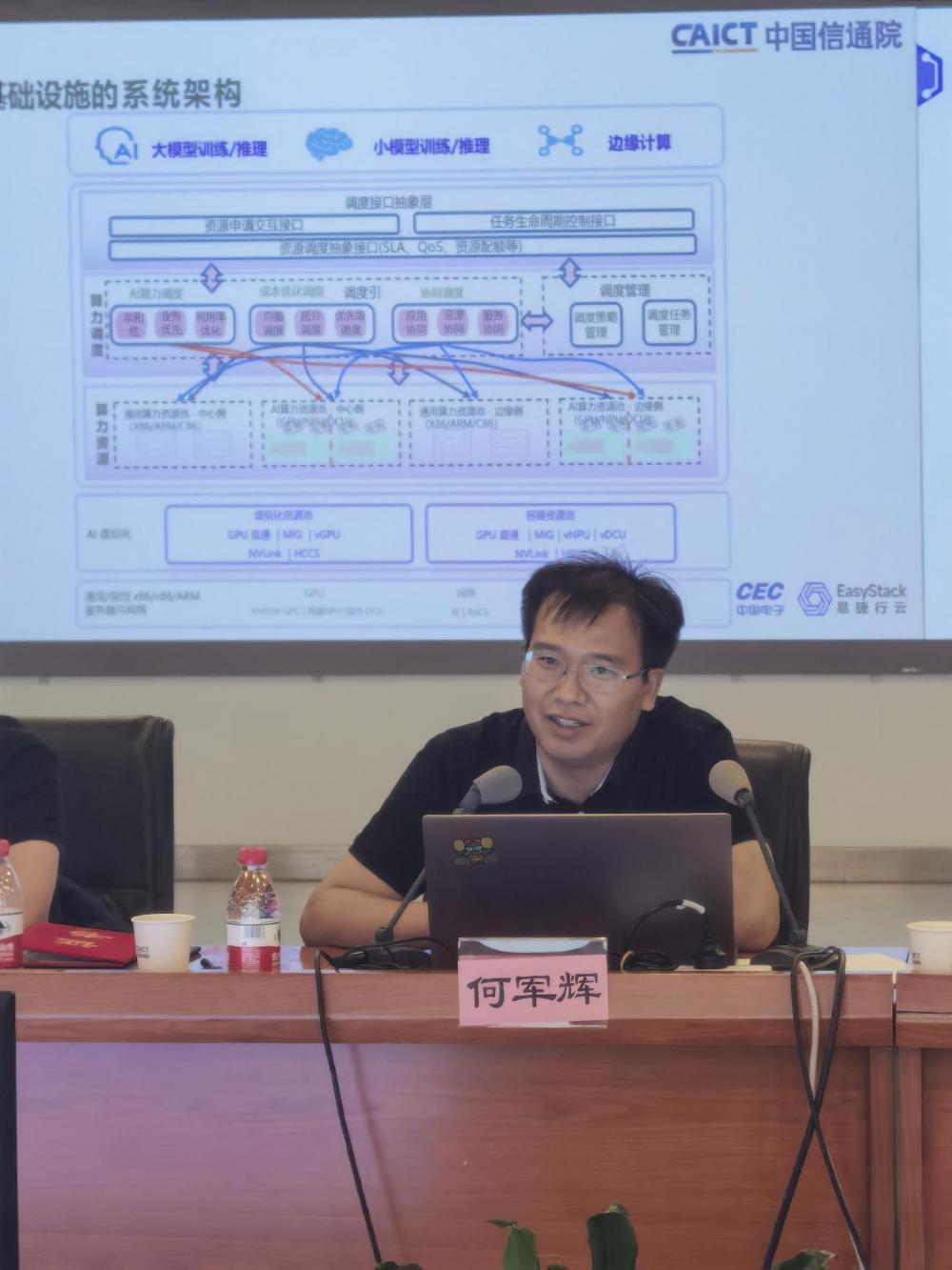 易捷思达科技发展有限公司信创部副总经理何军辉分享了《云原生异构AI算力池,助力金融行业大模型建设》,探讨了如何发挥云原生的优势,更方便快速地供给算力。同时分享了云原生AI基础设施的重点技术,以及大模型对金融业的赋能作用,并介绍了金融行业建设云原生AI算力平台的最佳实践和案例分享,为银行业人工智能技术的应用提供了参考。