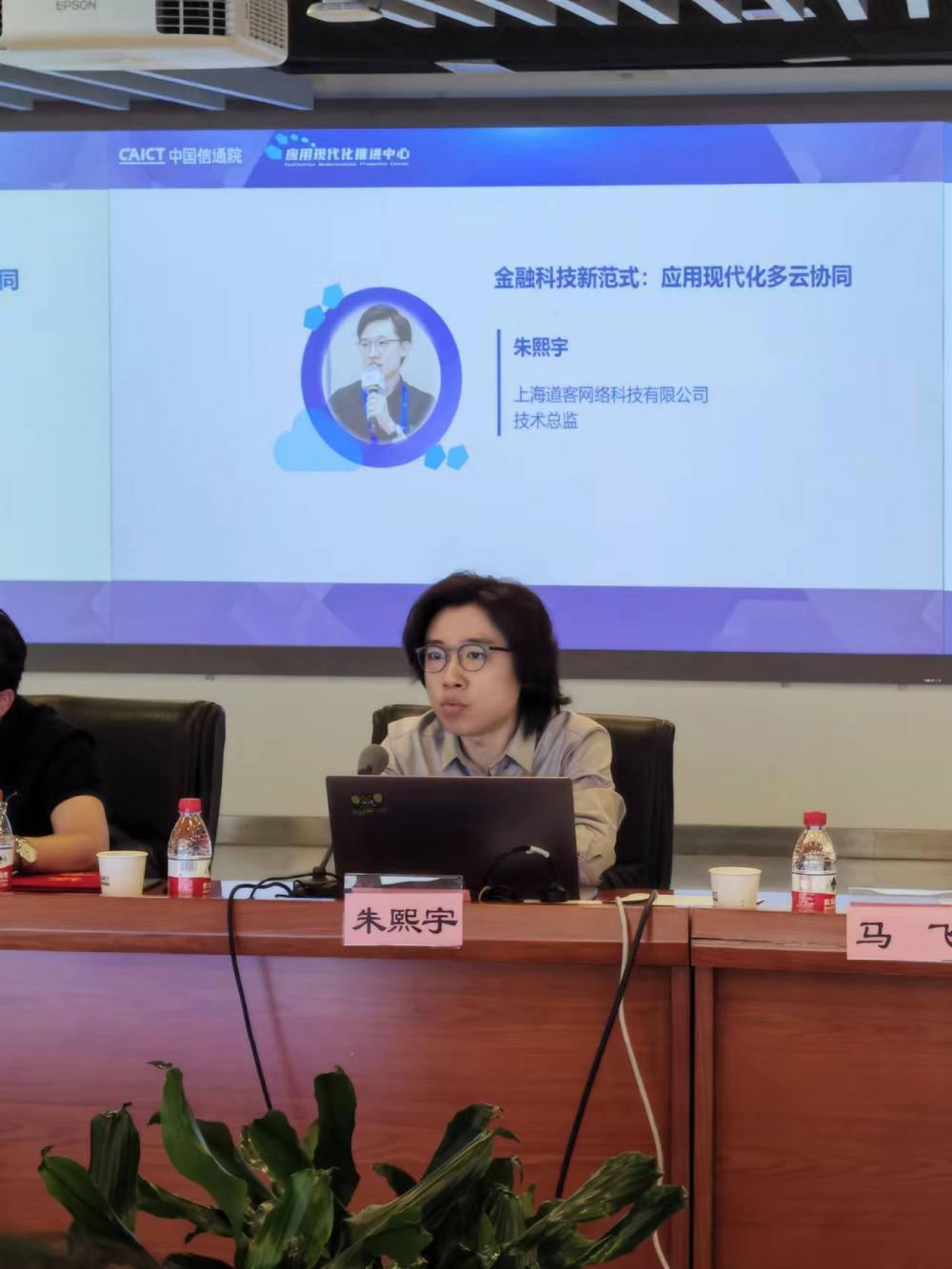 DaoCloud 技术总监朱熙宇发表了主题为《金融科技新范式:应用现代化多云协同》的演讲,全面介绍了应用现代化多云协同解决方案,通过详细介绍该解决方案的业务架构、核心能力、以及建设框架,展示了该方案如何帮助金融企业实现应用的跨云、跨地域自由流动,提升金融企业的业务灵活性和稳定性。