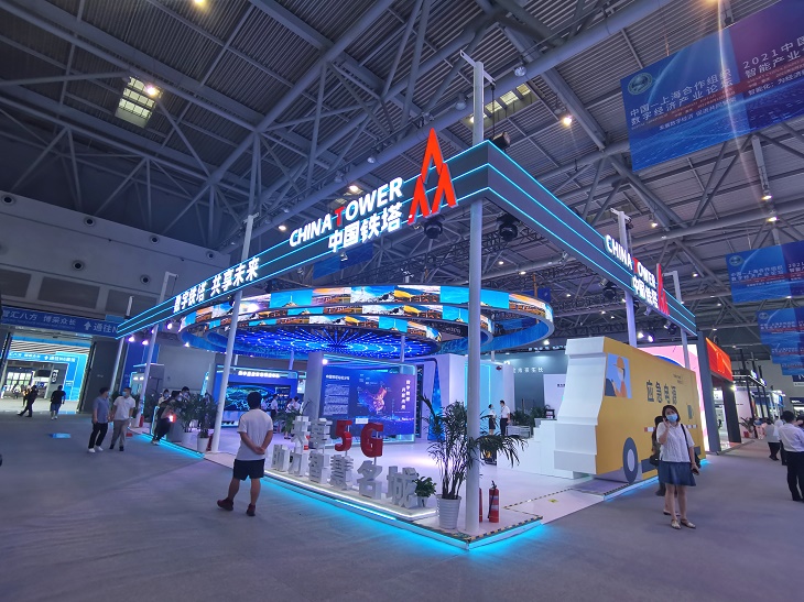 8月23日-25日,2021中国国际智能产业博览会(以下简称“智博会”)在重庆国际博览中心正式举行。本届智博会主题为“智能化:为经济赋能,为生活添彩”,以“线上线下结合,线上为主”原则举办。中国铁塔第四次亮相智博会,在约350平方米的展区,以“数字铁塔,共享未来”为主题,充分展现了5G新基建主力军、共享经济践行者的形象。其中,广泛服务经济社会的“数字塔”应用更让人眼前一亮,铁塔早不再是一座傻大黑粗的铁疙瘩,通过数字化手段升级,也可以这样智能化,充满科技含量!在智博会官方网站线上观展中,中国铁塔线上展区通过虚拟现实技术,实现产品模型360度全方位展示,也彰显了满满的科技元素。