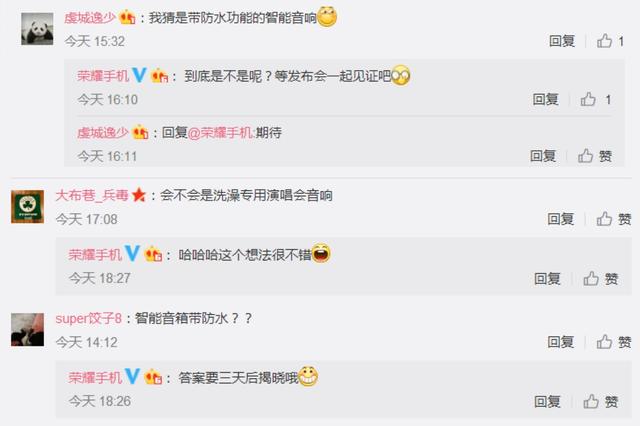 综合上述信息,以及根据预热海报的关键词和画面,让人开始猜测难道荣耀这次推出的新产品是便携式蓝牙音箱。首先从画面上看, 新产品的外观与音箱类的音乐播放器十分接近,其次从海报文案来看,防水,便携,音质,音量都是突出卖点。这些都预示着这款产品极有可能就是便携式音箱,而近年来蓝牙音箱也是市场上的大热门。最近,就有不少拥有着高颜值外观、突出性能与绝佳音质的蓝牙音箱出现在了大众的视野中,也让更多的年轻用户能够听音乐的时候不受束缚,随时随地都能享受高品质、多音效的音乐体验。荣耀一直致力于给广大消费者带来更好的科技体验,并坚持为年轻人打造科技潮品,因此荣耀发布旗下第一款便携式蓝牙音箱,也是大势所趋,顺理成章。
