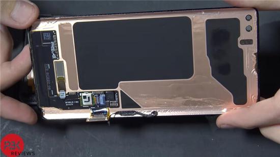 从视频来看,三星Galaxy S10 +屏幕和背板都连接到中框,这样可以轻松更换屏幕而无需完全拆卸。随着拆卸过程的推进,更多东西开始出现,三星似乎在该机中应用了厚厚的导热膏和某种散热片以及广告中的“铜蒸气室”。
