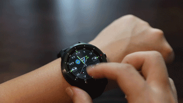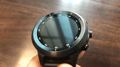 长按按钮就能轻而易举的开机,设置好简单的个人信息后就能进入主界面,触屏的时候就能感受到1.3英寸大表盘的方便,手指滑动时丝毫不会感到局促,从主界面表盘上下左右滑动可以抽出不同的功能菜单,动画效果十分流畅,360像素x360像素的AMOLED显示屏画质也同样非常细腻。为了测试运动时的触屏效果,我尝试了用沾湿的手指进行触屏操作,结果是普通出汗的情况下完全可以正常使用,IP68 Water Proof的防水等级支持手表在游泳、淋浴时佩戴,因此可以全天候佩戴在手上,24小时记录记录健康数据。另外,参考产品介绍,表面屏幕采用的康宁大猩猩三代玻璃以及氧化锆陶瓷表圈防滑耐刮,硬度也足够保证运动过程中表盘的安全。