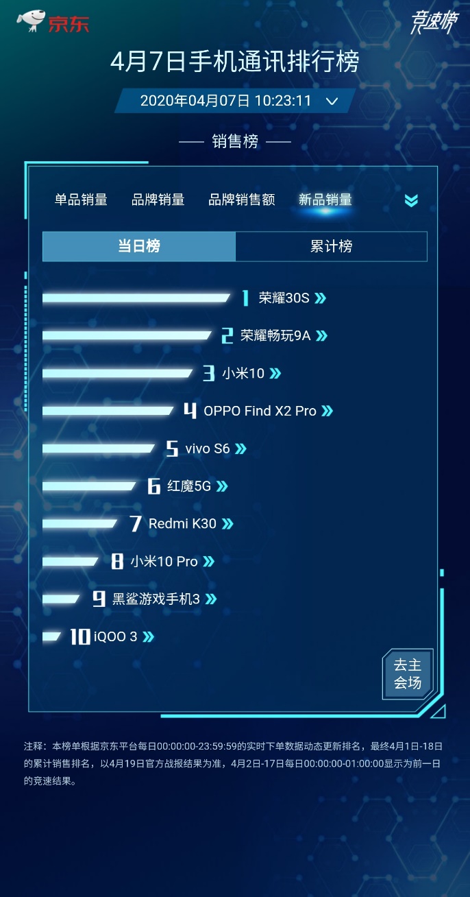今日首销的火爆表明,荣耀30S确实有着“档位王者”的实力,既为有意升级5G的用户带来更好的选择,也足以引发手机市场“震荡”,堪称一匹“黑马”。荣耀30S全平台开售,销售额1秒破亿,更无悬念成为京东手机当日新品销量榜首。