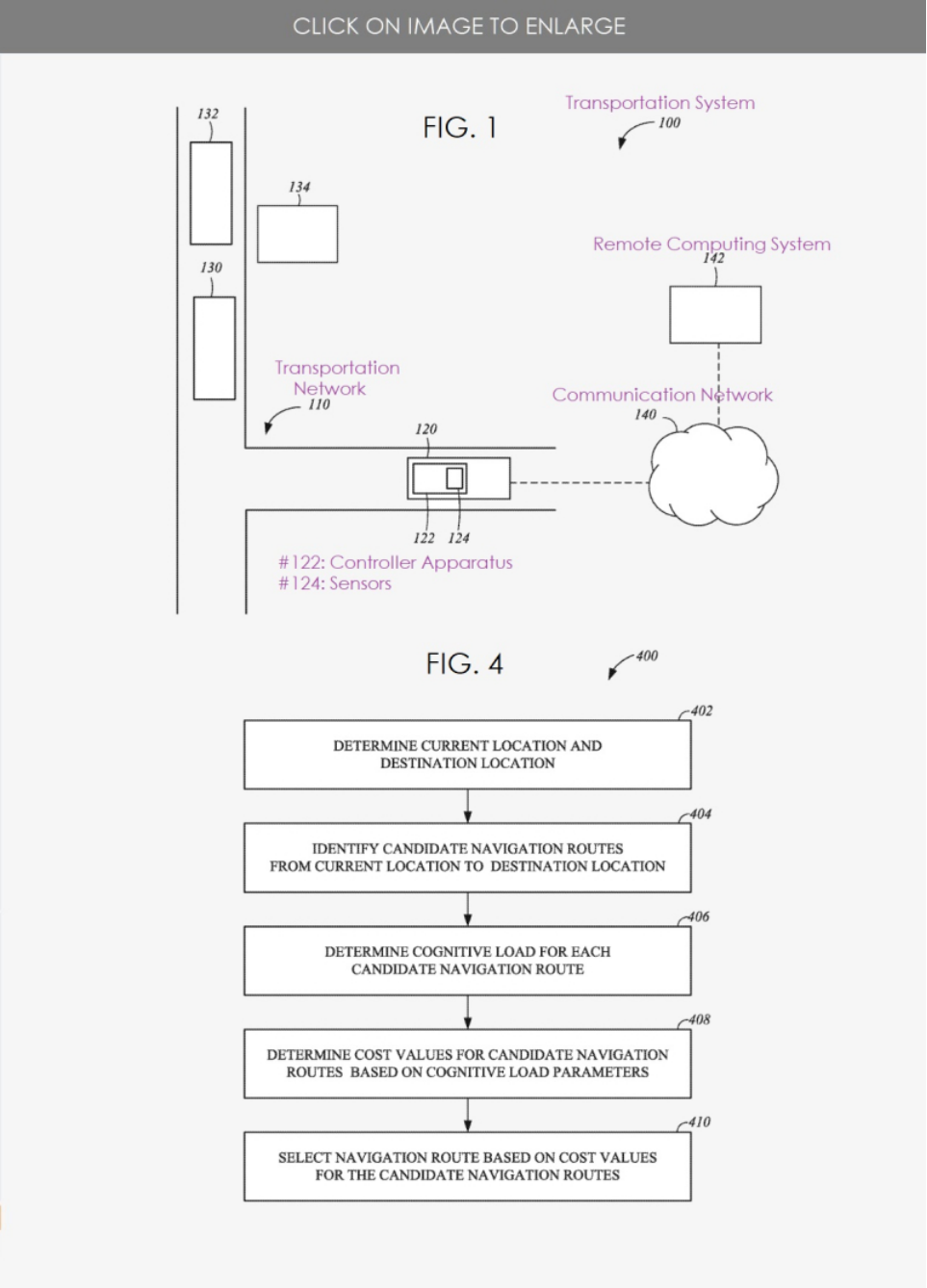 苹果第二项与“泰坦计划”相关的专利名为“用于车辆导航的认知负载路由度量”,专利号为10,627,248。