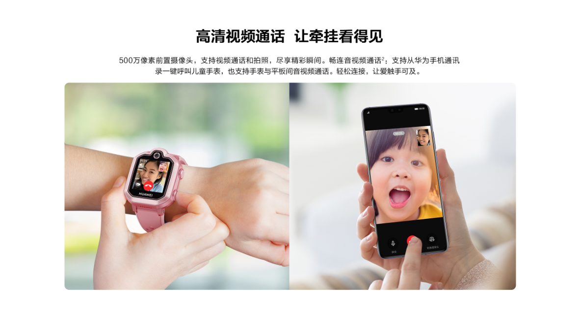 通讯方面,在上一代500万像素高清视频通话和4G全网通的基础上,华为儿童手表3pro超能版新增了畅连视频通话功能。家长在支持EMUI10.1及以上的华为手机端开通“畅连通话”功能后,视频通话不需要通过“智能关怀”APP,直接通过手机通讯录即可拨打。除了手机接听,支持EMUI10.1及以上并开通畅连通话功能的华为平板也可接听视频来电。