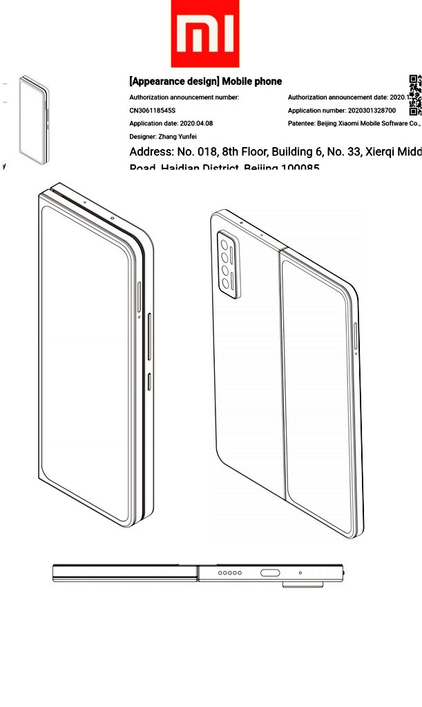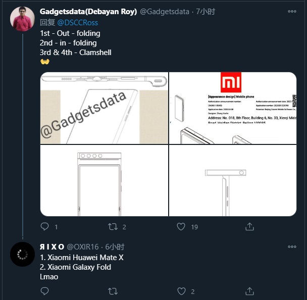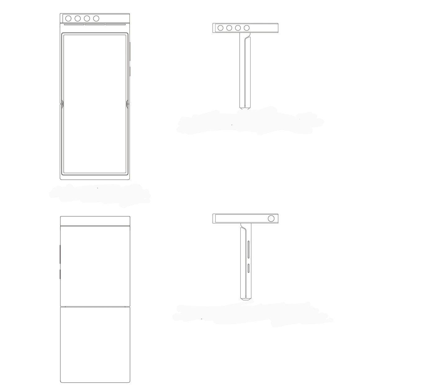 之后,一位网友响应@Ross Young 的爆料贴出了几张小米折叠手机的专利外观图。