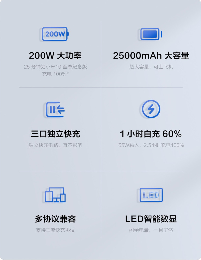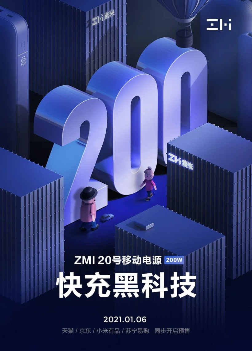 去年 10 月份,紫米发布了 20 号移动电源,该移动电源拥有 25000mAh 超大容量,三个接口输出总功率可达 200W,可以带上飞机,售价 399 元,目前已在京东商城、天猫商城、小米有品等平台上架。