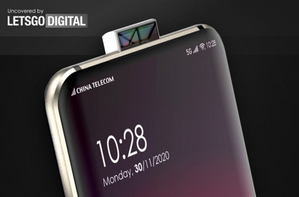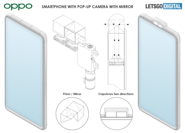 设计图显示,该方案将采用偏光折射棱镜的弹出式前置摄像头设计,能够让弹出式相机的高度更低,通过顶部的棱镜将光线折射到朝上放置的镜头里,从而提供全面屏体验。