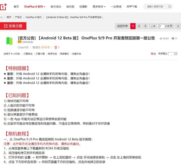 想要升级Android 12的网友务必注意,升级Android 12会清除手机所有内容,请先备份。目前已知指纹功能不可用、人脸识别功能不可用、视频通话功能不可用,部分界面显示不够美观,一些App可能无法正常运行或使用全部功能,此版本可能会存在稳定性和性能问题,不适合日常使用,特别是对于非开发者。想要升级的小伙伴,请提前做好相应的措施。