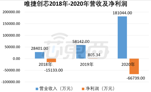 ▲唯捷创芯 2018 年-2020 年营收及净利润