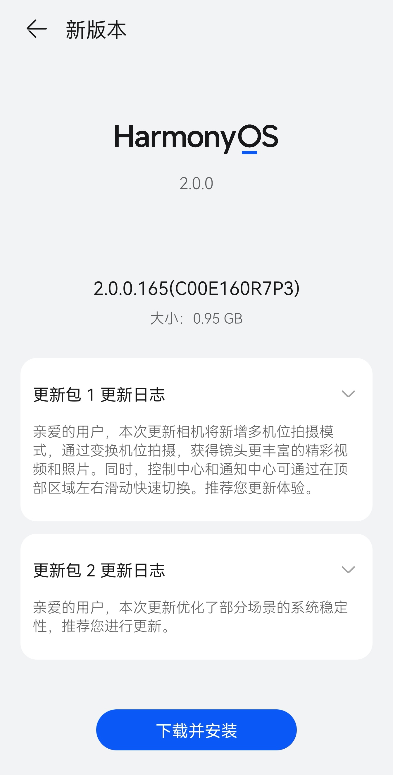 1、2021 年 8 月 16 日:“我的华为”App 升级不限量开放,支持 2.0.0.138 版本升级到 2.0.0.165patch04 版本(升级方式:“我的华为”App >“升级尝鲜”> 立即查看)