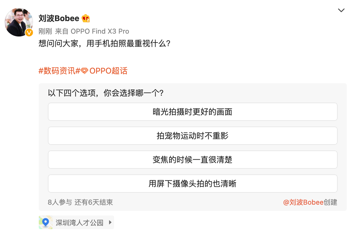 回顾过往,每当 OPPO 在各条技术线上取得突破性成果时,都有举办技术沟通会或开放日的传统。针对此次未来影像技术发布会,OPPO 副总裁、中国区总裁 @刘波 Bobee 也参与到与微博网友的讨论中来:用手机拍照时最看重的是什么?