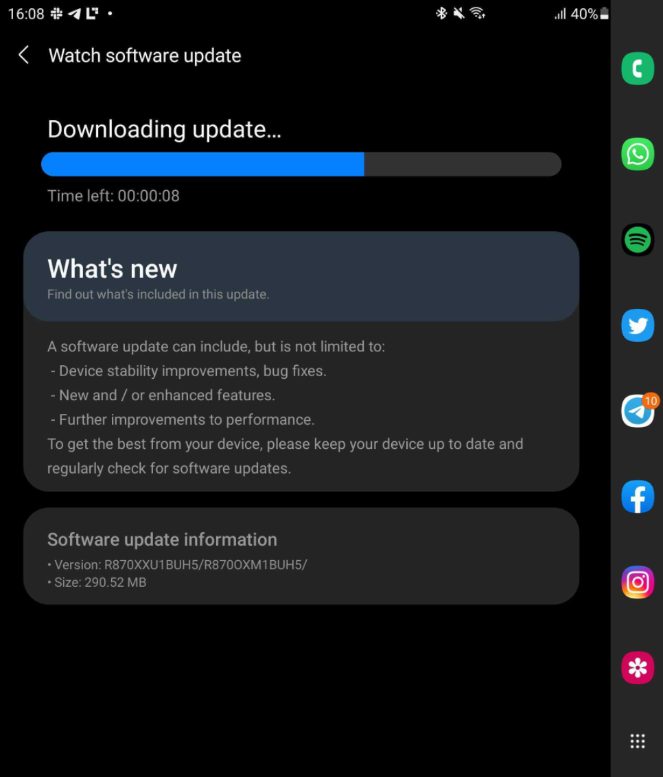 根据三星的更新日志,本次更新提高了设备的稳定性,修复了一些错误,添加新功能并增强了现有功能。该固件的版本号为 R8xxXXU1BUH5,大小为 290.52MB。