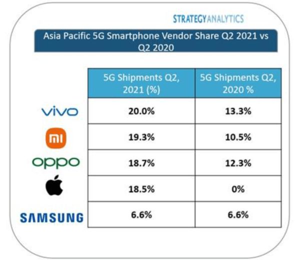 二季度vivo升至亚太5G智能手机出货量第一