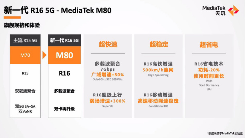 在今日的联发科沟通会上,联发科公布了新一代的 5G 调制解调器 MTK M80,基于 3GPP 最新的 5G R16 标准,支持多载波聚合,预计接下来的天玑 2000 有望用上这款基带。