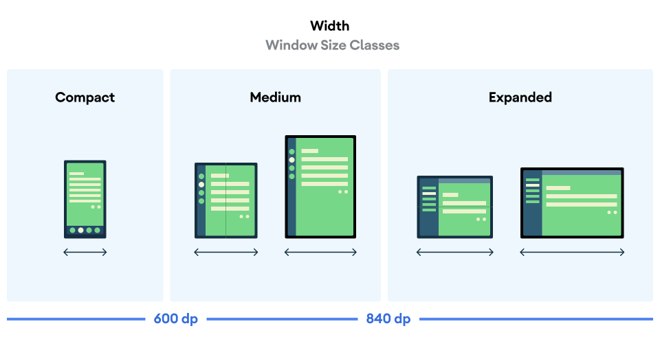 Jetpack WindowManger 库采用向后兼容的方式来处理应用中的窗口,并为所有设备构建响应式 UI,新增了 Activity embedding、窗口尺寸类 (Window Size Classes) 、感知折叠的 API。