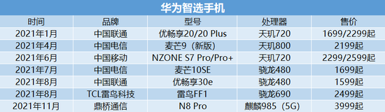 实际上,梳理下来,华为目前销售的华为智选手机不只是鼎桥通信的产品,还包括与三大运营商、雷鸟科技合作的产品。这些产品虽然未搭载麒麟5G芯片,却也搭载了联发科和高通的5G芯片,实现了5G功能。