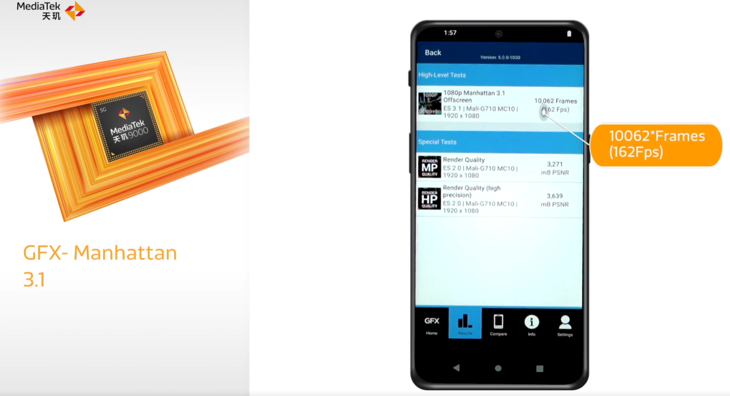 天玑 9000 的 Manhattan 3.1 Offscreen(1080p)为 162Fps,骁龙 8 Gen 1 为 176Fps。