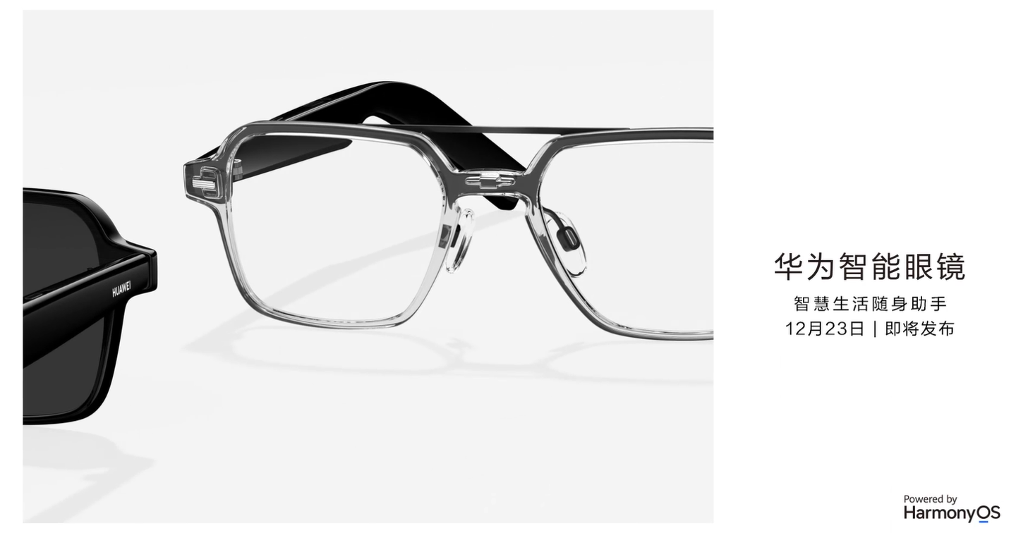 华为预热海报称这款智能眼镜为“智慧生活随身助手”,搭载鸿蒙 HarmonyOS。这款智能眼镜支持更换镜片,左右两侧眼镜架配备发声单元。