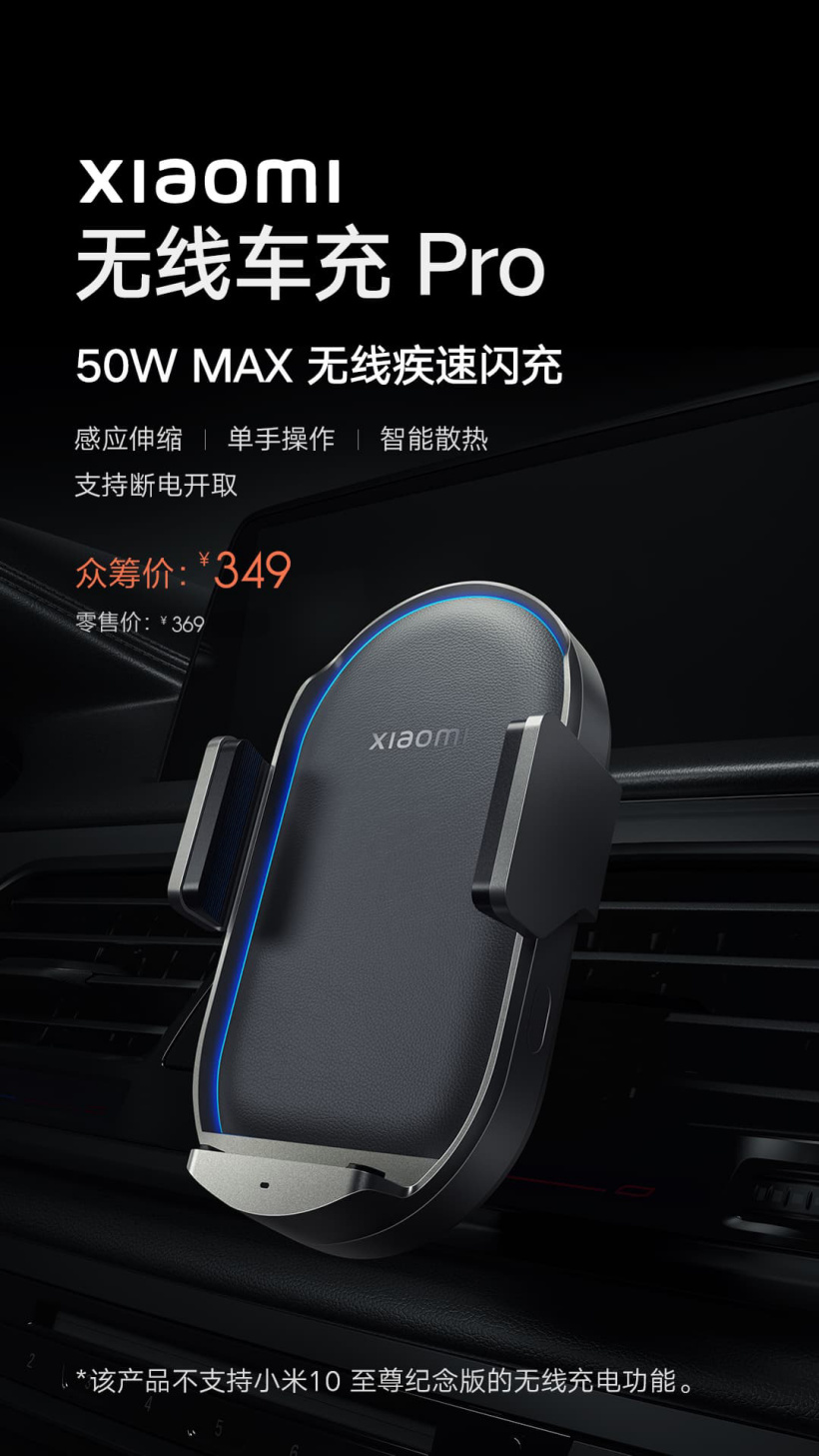 小米商城现已上架了一款众筹新品 —— 小米无线车充 Pro,将于 12 月 28 日上午 10:00 开启众筹,支持 50W MAX 无线闪充,支持断电开取、单手操作、感应伸缩,提供三种安装方式。(众筹价 349 元,正常价 369 元)